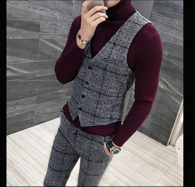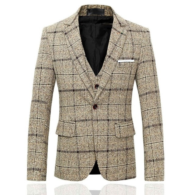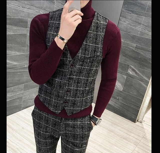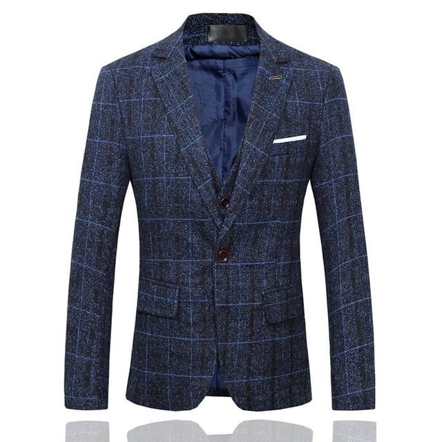 3 Pieces 2019 Suits Men British New Style  Designs Royal Blue Mens Suit Autumn Winter Thick Slim Fit Plaid Wedding Dress Tuxedos